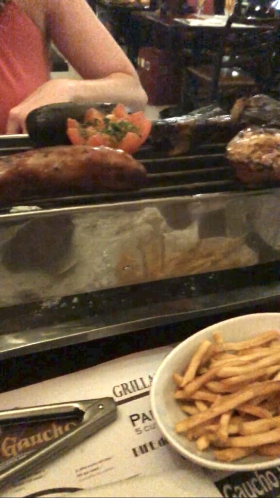 For our last dinner in Aruba, we ate at El Guacho Steakhouse. This Argentinian style steakhouse was so good. It was located a short walk away from the resort through the town. My husband is a huge meat fan, so he was in absolute heaven. When they brought out our food, they placed a small little grill on the table with the meats on top. My husbands eyes lit up.