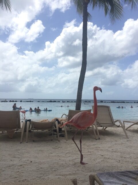 There are two beaches on the private island. The flamingo side and an iguana side. The Flamingo side is Adult only except early in the morning. This is pre having any babies, so mostly hung out on the Flamingo side. I will tell you though, I have a fear of birds. So as I did appreciate getting to see the flamingos pretty up close, you are not going to find any pictures of me trying to feed them. If you are into instagram- worthy photo opportunities, Flamingo Beach is perfect!