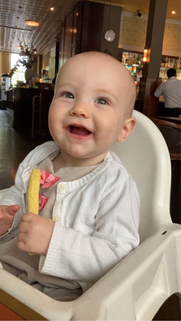 First things first, I can absolutely say I was a little anxious about our little girl E’s first red eye 8 hour flight. Our almost 3 year old had his own seat with snacks, headphones, and Mickie Mouse playing on repeat. E crushed it though. Only fussy a few times but mostly from just being a little overtired, but overall slept about 75% of the flight.