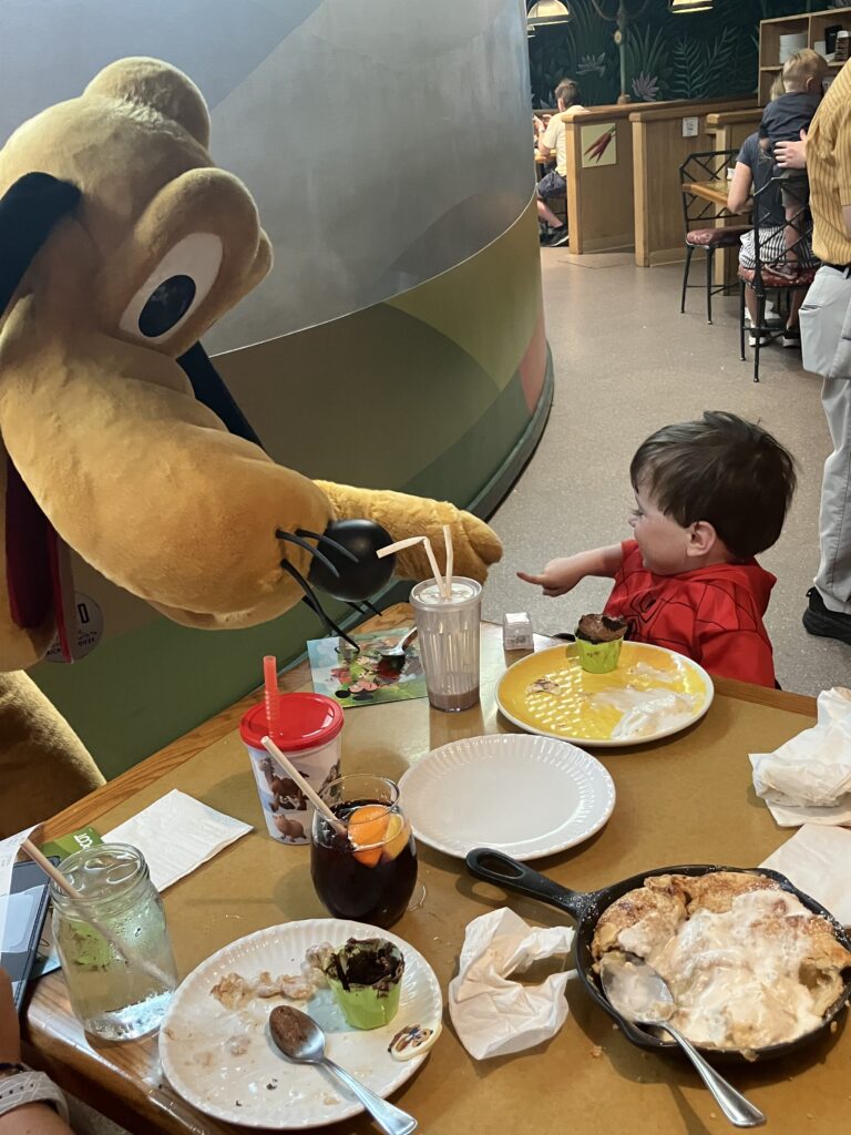 Overall, if we had to pay for our kids who aren’t big eaters at this point in time, I would probably skip the dining plan. It made so much sense for us because our son is at a magical time where seeing characters excites him so much and he is free. Once we have to pay for both kids, we would definitely need to assess if the character dining cost outweighs the want to focus on rides and time spent waiting in lines to meet characters at the park. But this trip, both kids were free and it absolutely made sense for us. Our character dinners basically covered the dining plan expense.
