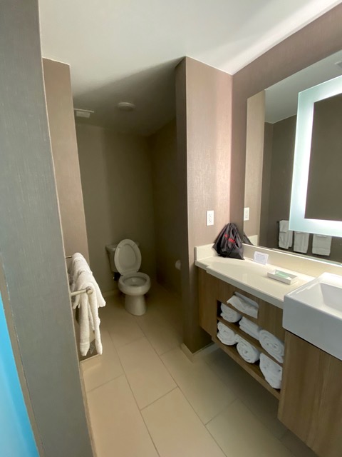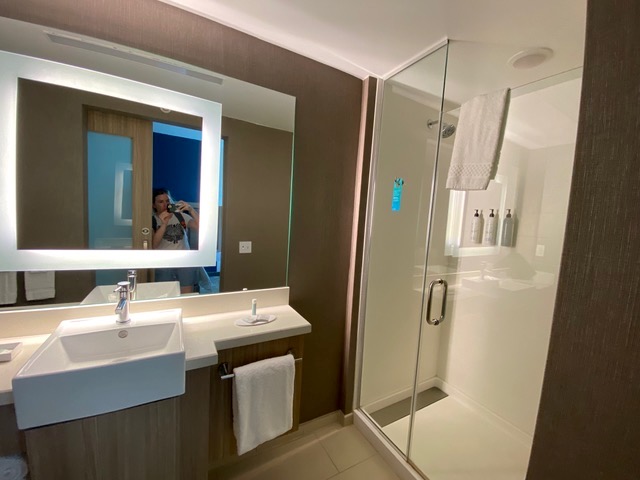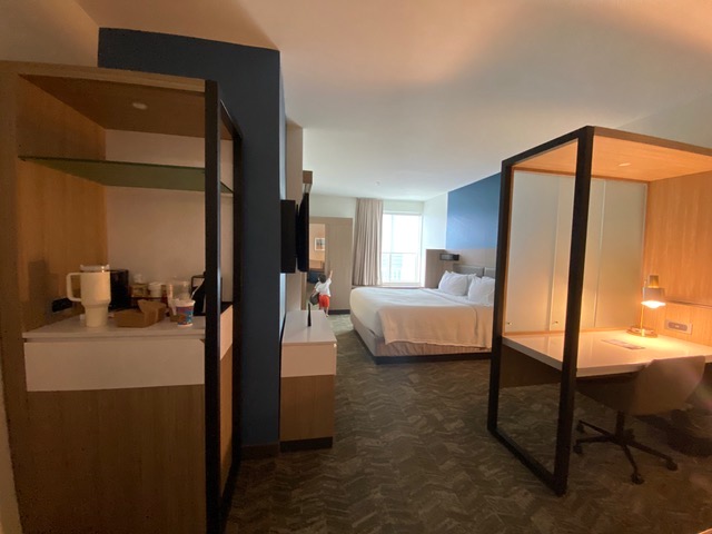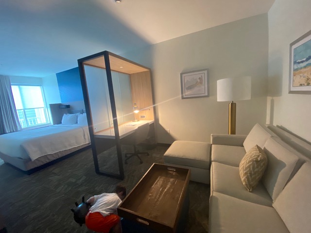 We booked a King suite because it had a little extra space and a separate area for our toddler to sleep. We booked pretty last minute so we were able to get a pretty good deal. The room came equipped with a microwave, fridge, and coffee machine.