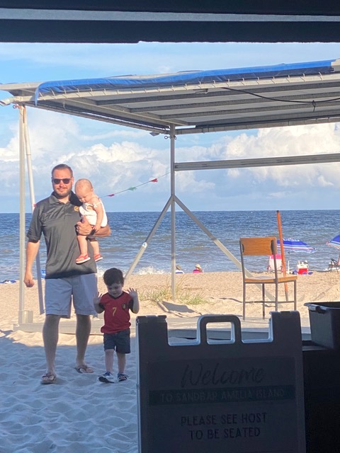 We are lucky to have some friends that live in Jacksonville, Fl only 45 minutes away that joined us for a beach day. The beach was interesting to us as it had 2 levels going down to the beach. We snagged a spot close to the Sandbar which was nice since it was Labor Day weekend.