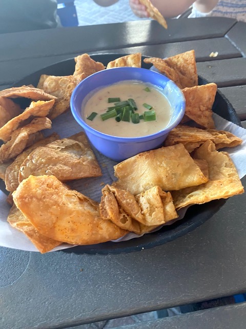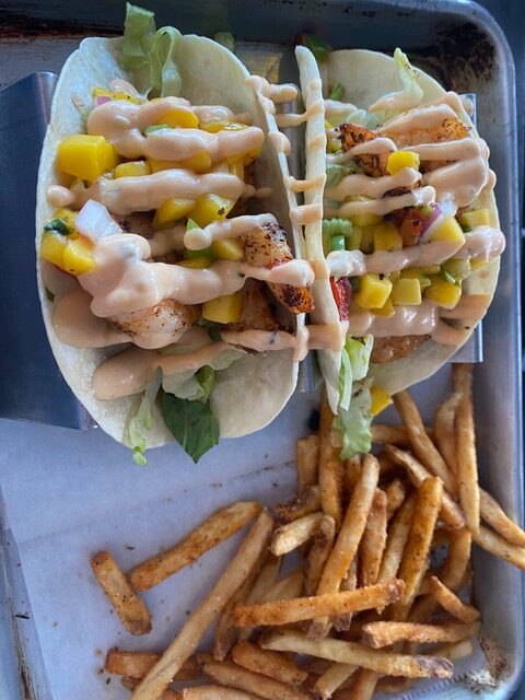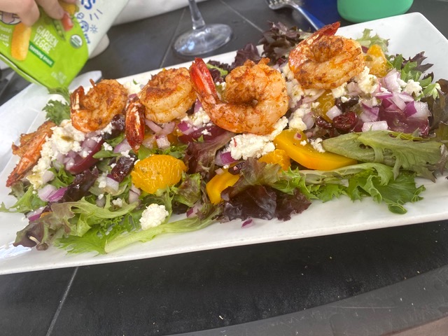 My husband wasn’t starving so he just went with a salad, but I got shrimp tacos that were pretty good. The best thing we had was the seafood queso dip to start. Highly Recommend!