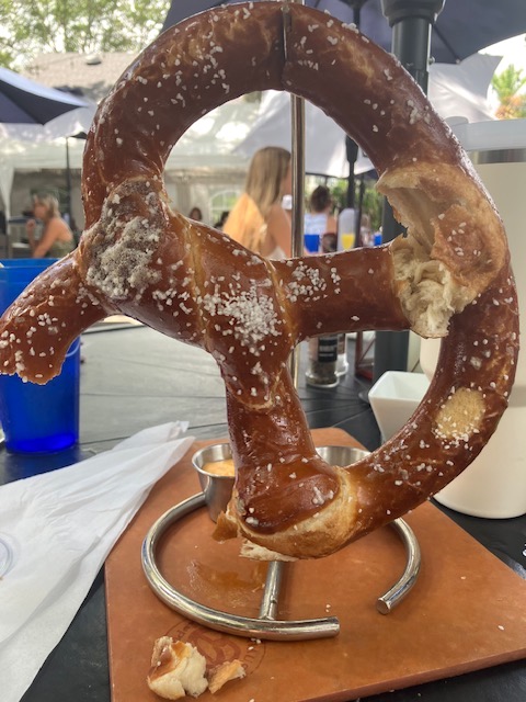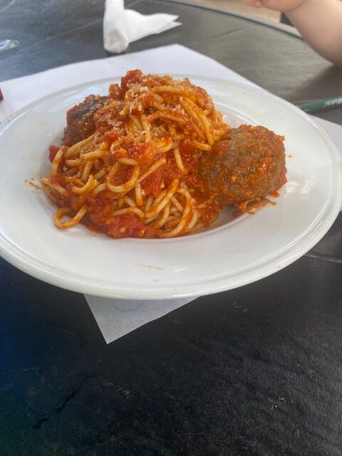 I went with a beet salad with shrimp, my husband wasn’t very hungry so he just got the Bavarian pretzel, and we got my son a spaghetti and meatball. Of course our son was way more interested in the pretzel so he barely touched his spaghetti. I ended up having his leftovers for lunch though and I can tell you it was delicious. My salad was very good as well. The service was a little on the slower side but our server was very apologetic and was very interactive with the kids.